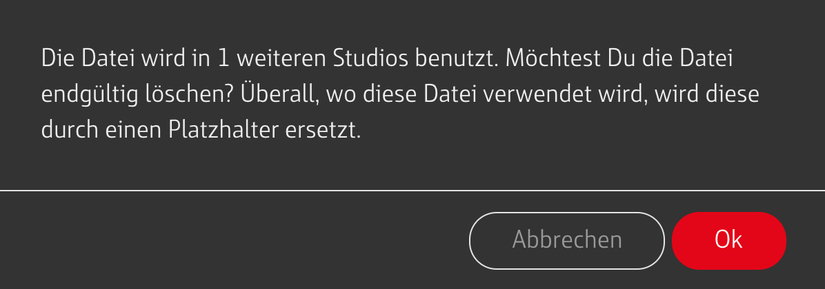 Wenn du ein Bild löscht, welches auf einer Studioseite verwendet wird, erscheint die Meldung: