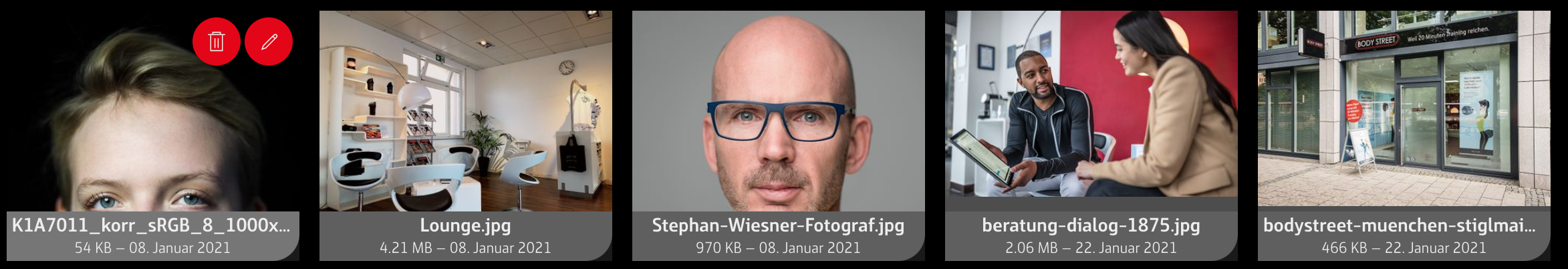 Du kannst Bilder aus deinem Medienverzeichnissen löschen, indem du mit der Maus über das Bild fährst und den Löschen-Button klickst ( ).