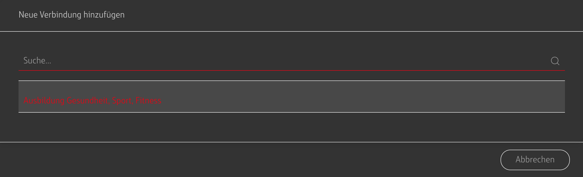 Beim Hinzufügen von Verbindungen erscheint ein Dialog, in dem alle Verbindungen erscheinen, die dir zur Verfügung stehen.
