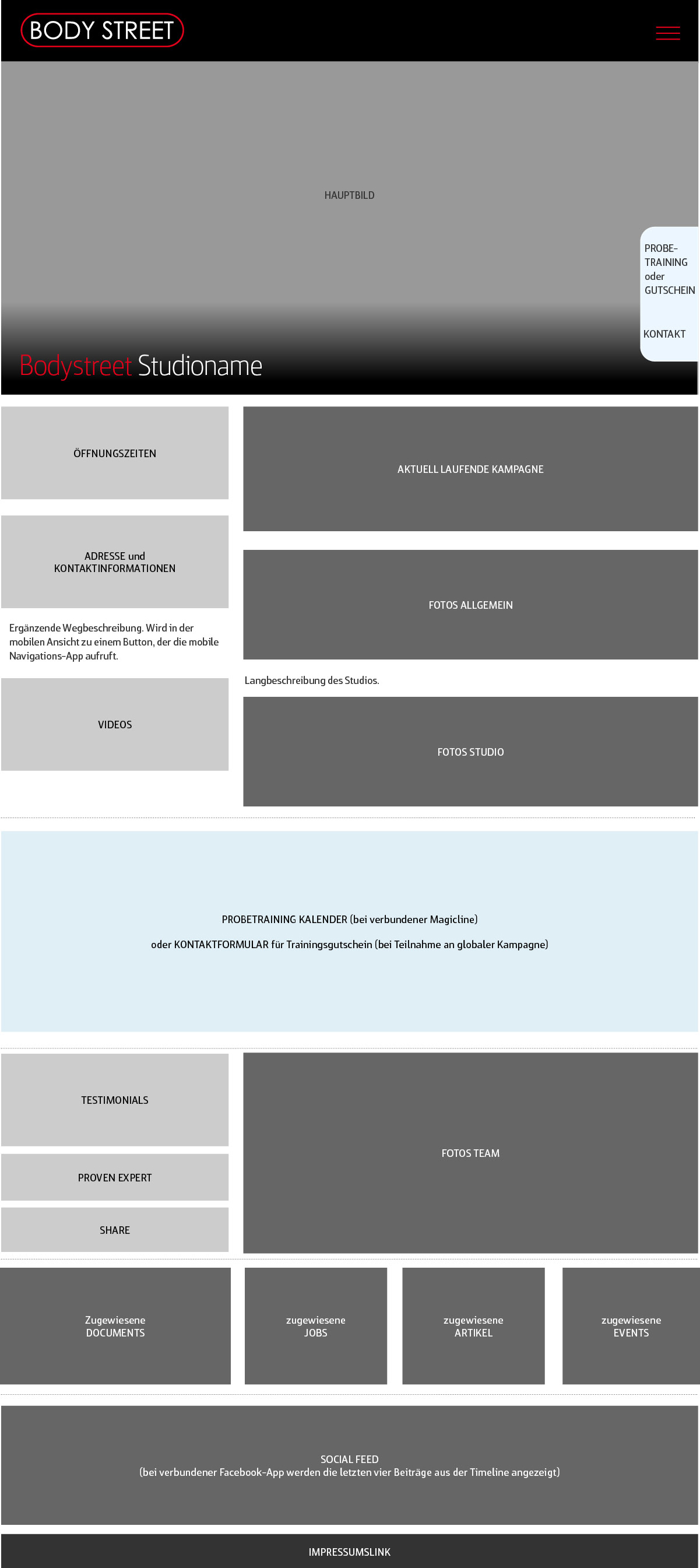 - Wegbeschreibung – wird unter Umständen von Ihrem Bodystreet Ansprechpartner ergänzt. Die mobile „Directions“, also die Navigation zu Ihrem Studio wird automatisch auf Basis Ihrer Adresse errechnet.